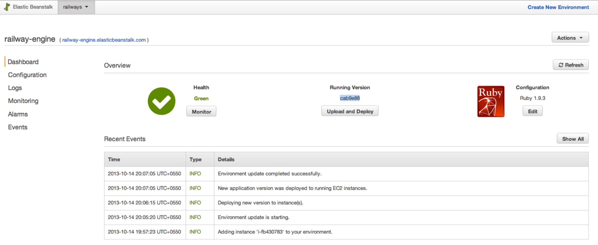 AWS Elastic Beanstalk dashboard