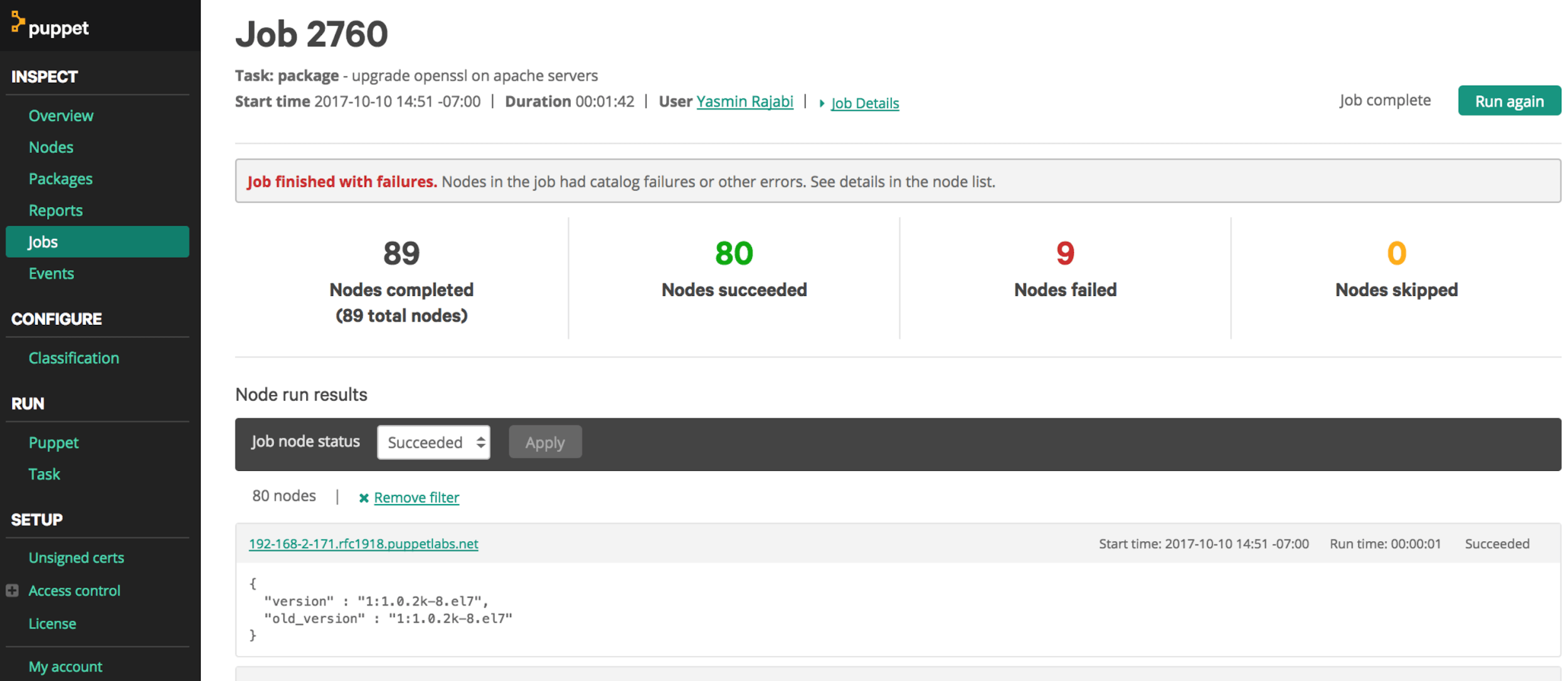 Puppet dashboard
