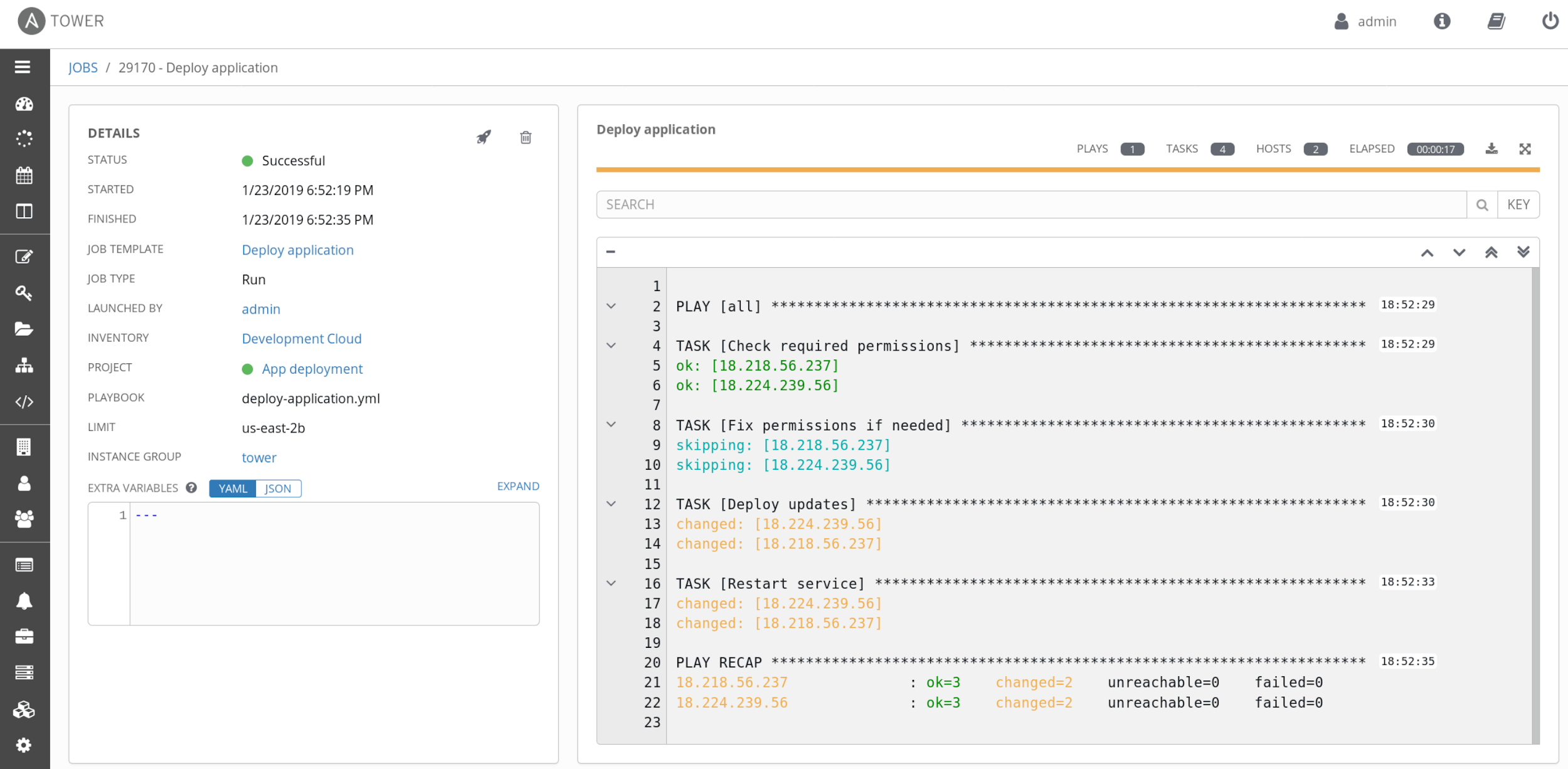Ansible Tower dashboard
