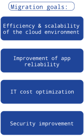 On the client's side, there is a dedicated unit responsible for security issues, which includes employees from various areas (Security, Operational and Support, Business, Infrastructure Architecture and Application Architecture). Before starting each migration, they verify and accept the action plan, as well as the application architecture according to the following scheme: